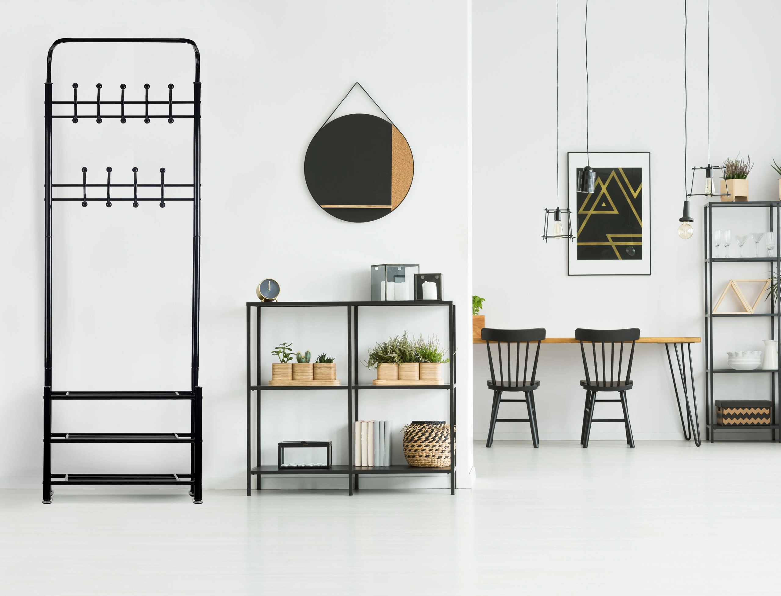 El perchero está fabricado en resistente metal, lo que garantiza estabilidad y una larga vida útil.