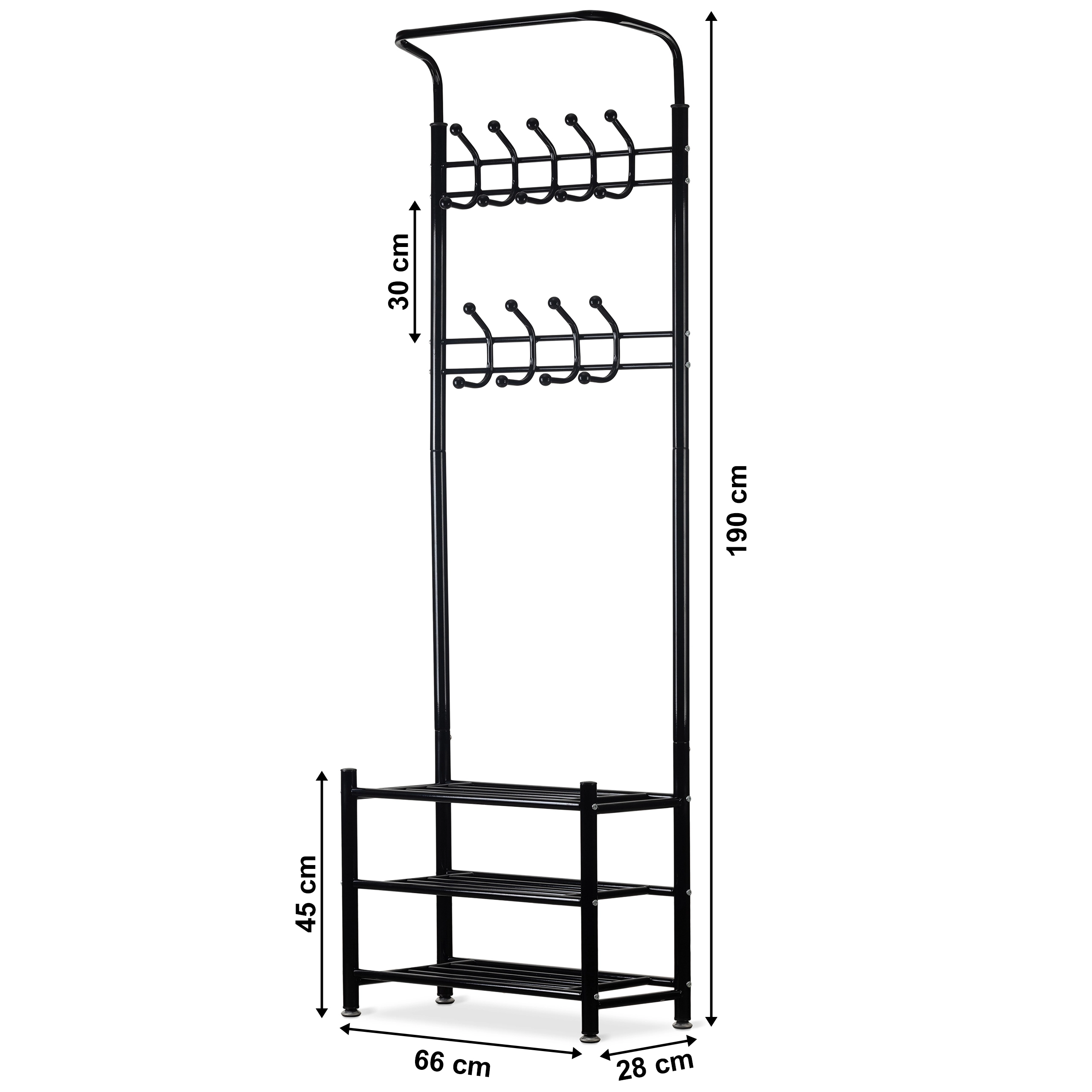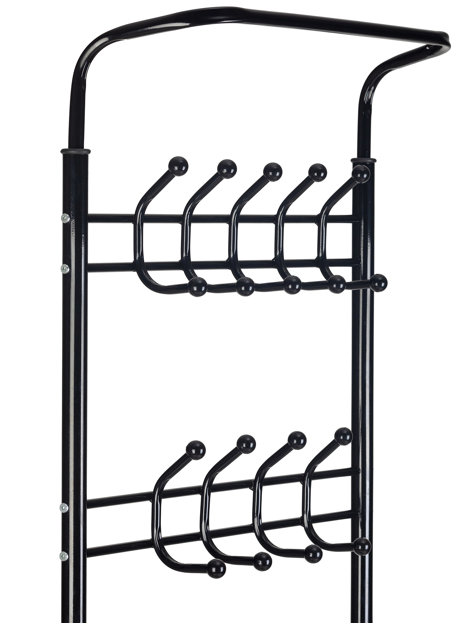 Este práctico perchero cuenta en la parte superior con dos filas con 18 ganchos, lo que lo hace ideal para vestidores domésticos, oficinas o salas de espera.