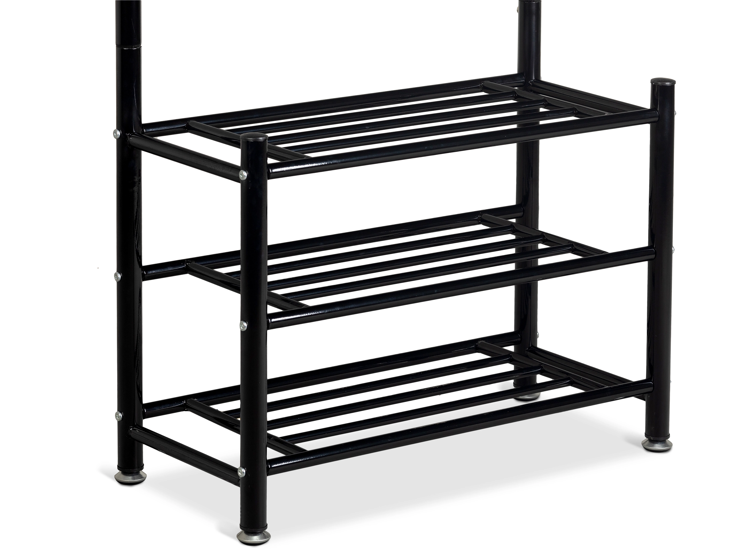 Ofrece 18 ganchos y 3 estantes para una organización altamente eficiente de la ropa y el calzado.