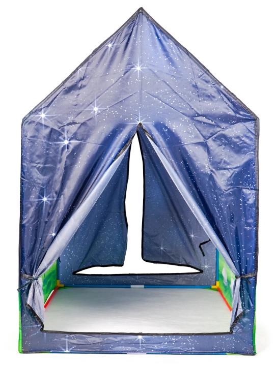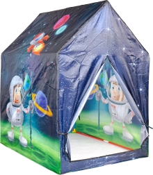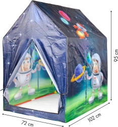 El armazón de plástico y la cubierta de poliéster garantizan la durabilidad de la tienda. Colores vivos y temática espacial estimulan la imaginación infantil y las ganas de jugar.
