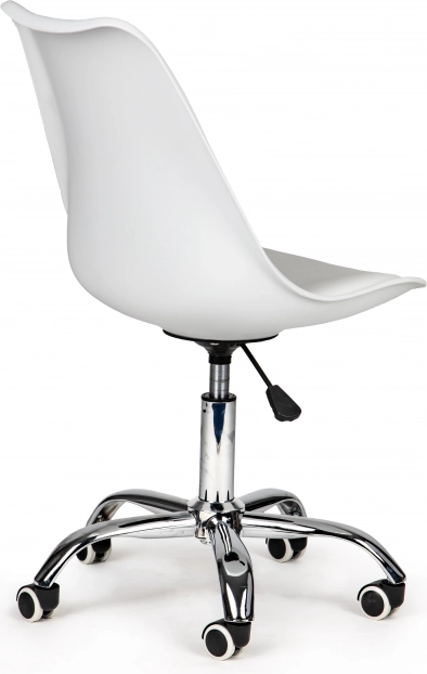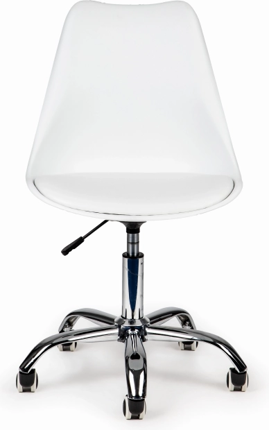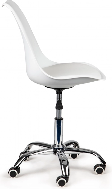 El diseño blanco minimalista con detalles cromados encaja en recepciones, salones y despachos domésticos. Las ruedas de goma se desplazan de forma silenciosa y cuidan el suelo, para que puedas concentrarte sin distracciones.