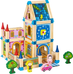 Este juego de construcción de madera transportará a tu hijo a un mundo de construcción ilimitada y creación de nuevas estructuras. El set, con colores atractivos y un gran número de bloques, garantiza horas de diversión.