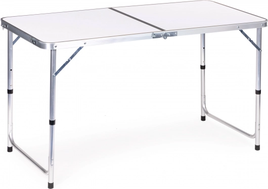 Disfrute de comidas cómodas al aire libre. La amplia encimera en color blanco mate es fácil de mantener y acomoda cómodamente hasta 4 personas. La altura ajustable de 61,5–69,5 cm garantiza confort tanto para el café de la mañana como para el almuerzo en compañía. El bloqueo de seguridad protege contra plegados accidentales y la estructura metálica estable aporta confianza en terrenos irregulares.