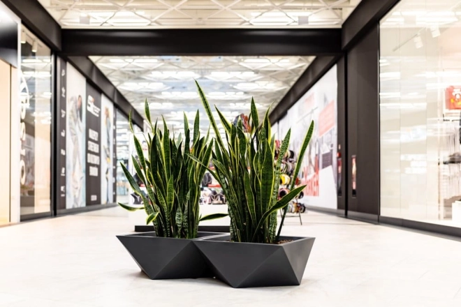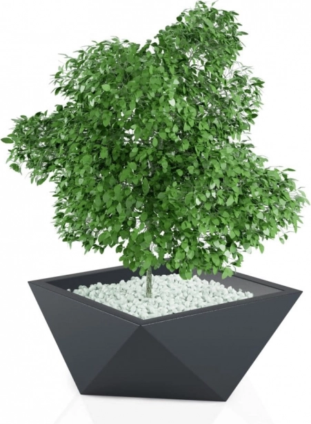 El macetero MONUMO Vendetta combina minimalismo con geometría marcada, por lo que destaca en interiores modernos y también en terraza o jardín. Su elegante acabado en antracita realza la belleza de las plantas y aporta un toque de diseño limpio al espacio.