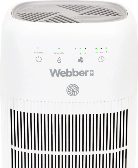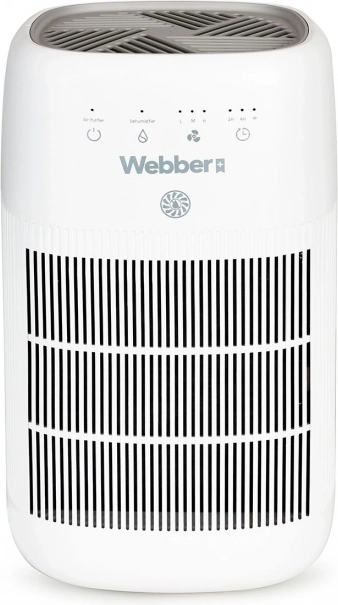 El deshumidificador y purificador de aire Webber combina la tecnología moderna PureAir con una deshumidificación eficaz, reduciendo la humedad interior, limitando la formación de moho y la condensación en las ventanas, y filtrando polvo, alérgenos y olores. La filtración en tres etapas (prefiltro, filtro de carbón y HEPA 13) captura hasta el 99,97 % de partículas desde 0,3 μm: una solución ideal para alérgicos y familias con niños.