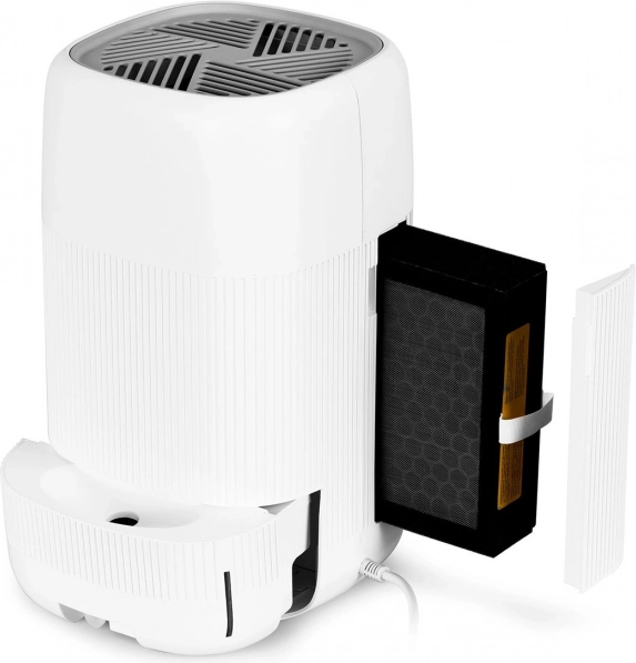Dispositivo compacto 2 en 1 para un hogar saludable: deshumidificador y purificador de aire con filtración HEPA 13 de 3 etapas que elimina hasta el 99,97 % de las partículas desde 0,3 μm, deshumidifica hasta 750 ml/día en un depósito de 1 l. Gracias a Auto-Defrost funciona entre 5–50 °C, ofrece funcionamiento silencioso, temporizador y 2 modos para máxima comodidad y seguridad.