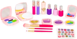 Despierta la imaginación de las pequeñas coquetas con este set de cosmética infantil que ofrece todo lo necesario para jugar a maquillarse. Todos los accesorios están diseñados para niños y se guardan cómodamente en un neceser textil de colores con cremallera (23 × 17 cm) y asa para la muñeca: ideal para casa y para llevar de viaje.