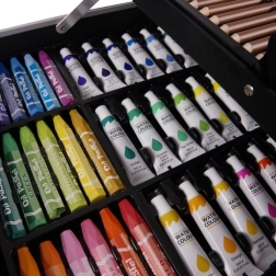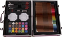 - 28× lápices de colores, 33× rotulador, 24× pastel al óleo, 24× acuarela, 24× pintura acrílica, 2× goma, 2× paleta, 2× lápiz, 4× pincel, 1× sacapuntas, 1× maletín