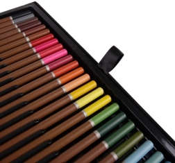 El contenido del set está diseñado para cubrir diversas técnicas, desde el boceto suave, pasando por líneas marcadas con rotuladores, hasta pintura acrílica cubriente o transiciones ligeras en acuarela. Gracias al maletín robusto con refuerzos y cierres metálicos, el transporte es seguro y cómodo, ya sea en casa, en la escuela o de viaje.