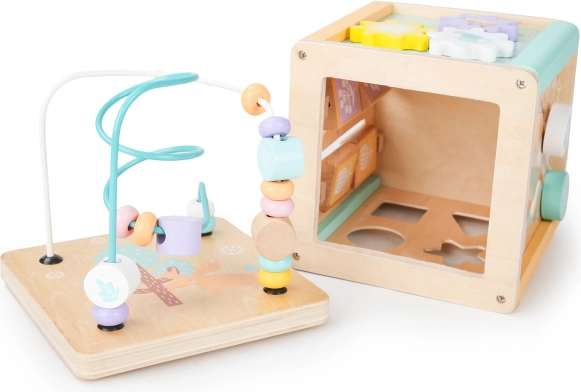 El cubo educativo de madera Ecotoys está diseñado para apoyar el desarrollo saludable de tu hijo. Cada cara del cubo tiene una función distinta que ofrece opciones nuevas y emocionantes para el juego diario. Este juguete mejora no solo las habilidades manuales, sino también el reconocimiento de formas y el pensamiento lógico.