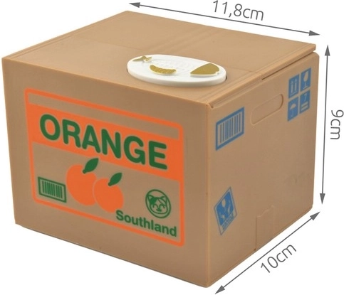 ¡Convierte el ahorro en diversión! La hucha interactiva al estilo “caja de naranjas” esconde un tierno gatito que, al poner una moneda sobre el platillo, sale, toma la moneda con la patita y con un alegre maullido la guarda dentro. Así, los niños reciben una recompensa inmediata y se motivan a apartar sus monedas.