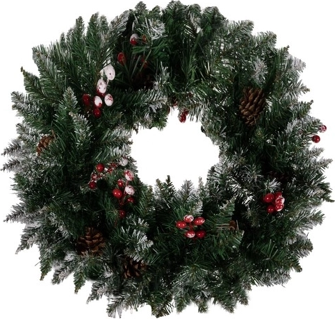 Adornada con bayas rojas y piñas, realza cualquier interior y añade encanto a los momentos festivos.