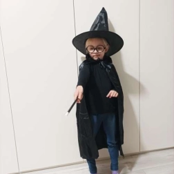 Este estiloso disfraz de mago ofrece todo lo que los niños necesitan para crear un disfraz llamativo y seguro. La ligera capa de material agradable cae elegantemente y, gracias al lazo, se sujeta bien en su lugar. El sombrero puntiagudo se despliega solo al sacarlo y crea un efecto “wow”. Las gafas redondas sin lentes son cómodas y seguras para jugar, y la varita de plástico resistente complementa a la perfección cada truco.