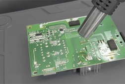 La mezcla especial de silicona resiste altas temperaturas y protege la superficie de trabajo durante la soldadura y el uso de aire caliente.