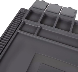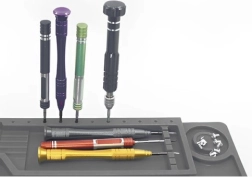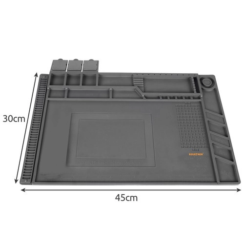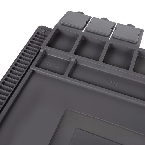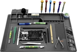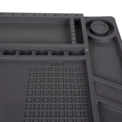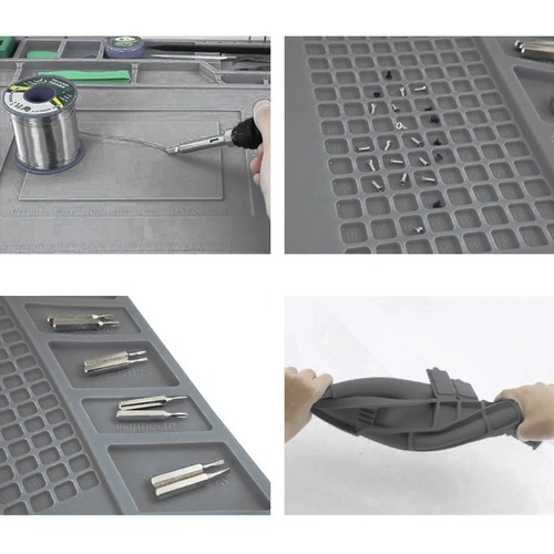 Esta alfombrilla de servicio de silicona multifuncional es ideal para reparar teléfonos móviles, portátiles y para soldadura de precisión. Gracias a sus 4 bolsillos magnéticos, compartimentos seccionados y espacios dedicados para destornilladores, tendrás siempre bajo control todas las piezas pequeñas y herramientas. El material antideslizante mantiene todo en su sitio incluso durante las tareas más exigentes.