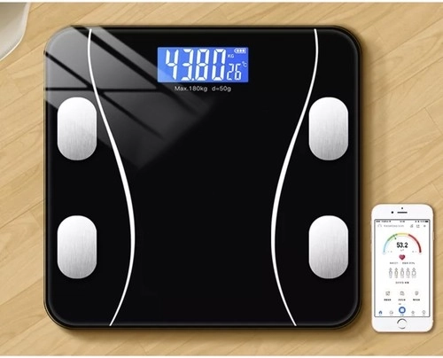 La báscula de baño inteligente RUHHY con pantalla LCD precisa y conexión Bluetooth mide hasta 8 parámetros corporales, incluidos peso, IMC, grasa, músculo, agua y masa ósea. El elegante vidrio templado negro soporta hasta 180 kg; en la pantalla también verás la temperatura ambiente y el estado de la batería. Los datos se sincronizan con la app gratuita OKOK International para un seguimiento claro del progreso.