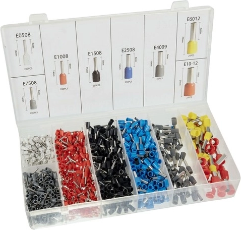 El paquete incluye un organizador transparente con 1200 punteras en ocho tamaños diferenciados por colores de 0,50 a 10,00 mm², para que siempre tenga a mano la medida correcta. Los alicates son adecuados tanto para profesionales como para aficionados, y resultan útiles en trabajos de montaje y mantenimiento eléctrico.