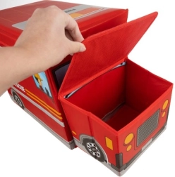Convierte la recogida en una aventura con la caja para juguetes con diseño Fire & Rescue. Gracias a sus dimensiones de 53 × 26 × 31,5 cm, guarda peluches, bloques, coches y material de manualidades. La tapa oculta con seguridad los tesoros de los niños y ayuda a mantener la habitación perfectamente ordenada.