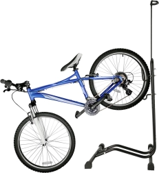 El soporte permite colocar la bicicleta en vertical para ganar más espacio en el garaje, trastero o piso. Ideal para espacios pequeños sin necesidad de taladrar la pared.