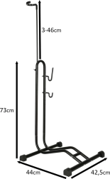 El soporte es compatible con la mayoría de bicicletas (urbanas, de trekking y de montaña) con diámetro de rueda de hasta 27,5" y ancho de cubierta de 6,5 cm. La base estable y los ganchos mantienen la bicicleta en posición vertical u horizontal, lo que te ahorra un valioso espacio en el garaje o trastero.