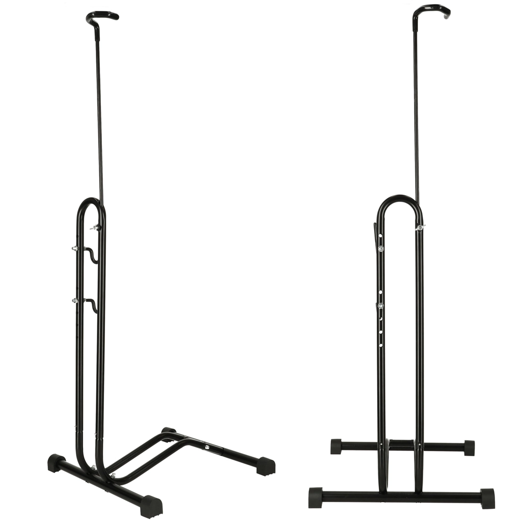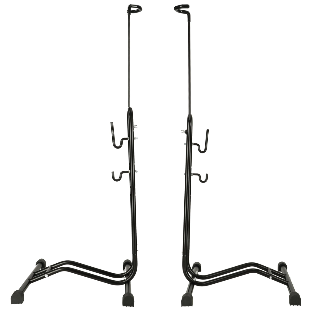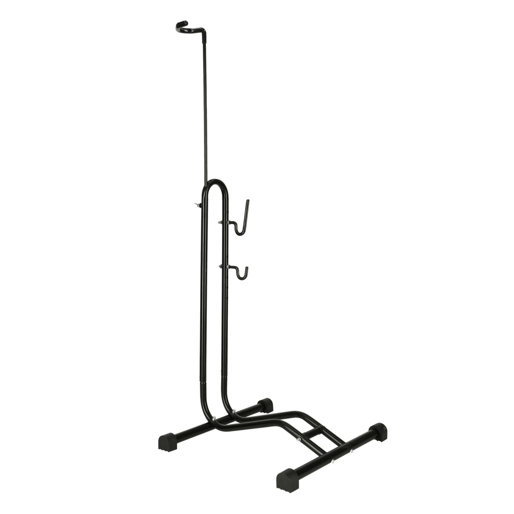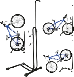El diseño metálico robusto garantiza resistencia y una larga vida útil. La base antideslizante y los ganchos de seguridad mantienen la bicicleta firmemente en su sitio.