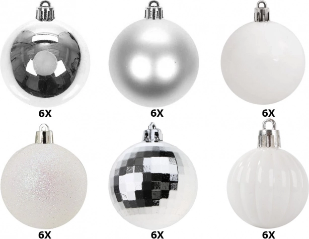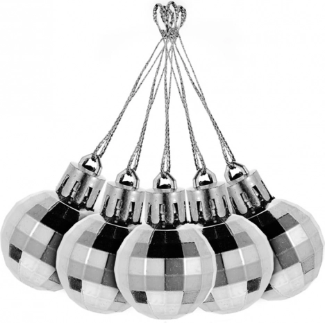 El juego incluye estilos variados, que abarcan desde elegantes blancos hasta brillantes bolas disco plateadas.