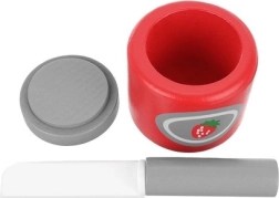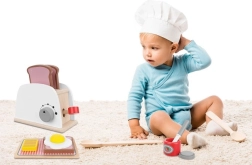 El manejo es fácil y divertido: el regulador giratorio de “temperatura” y la palanca inician el tostado, y tras un momento las tostadas saltan solas. El set fomenta el desarrollo de la imaginación, la coordinación mano-ojo y las habilidades manuales, y es un gran entrenamiento antes de cortar y preparar comidas de verdad.