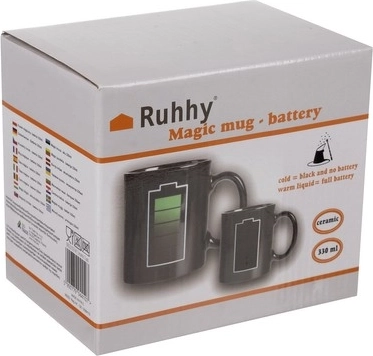 ¿Necesitas recargar energía? Esta taza mágica te lo muestra literalmente. Tras verter una bebida caliente, el contorno blanco del icono de batería se va llenando de color verde, como si la batería se estuviera cargando. A medida que la bebida se enfría, el color desaparece, así que siempre sabrás cuándo es el momento para otro sorbo.
