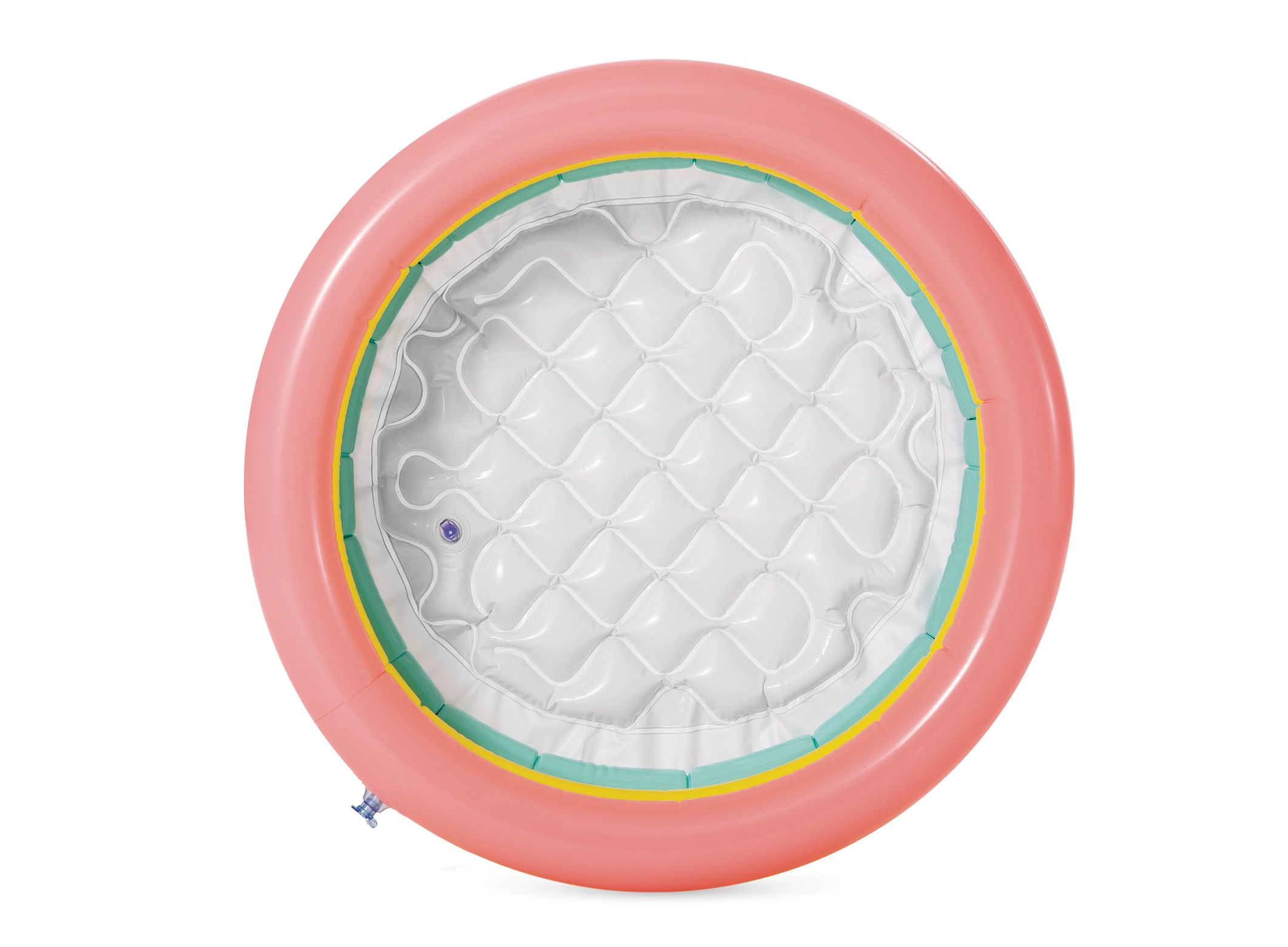 Tres anillos inflables en tonos llamativos rosa, amarillo y verde añaden atractivo a la piscina e invitan a los niños a jugar.