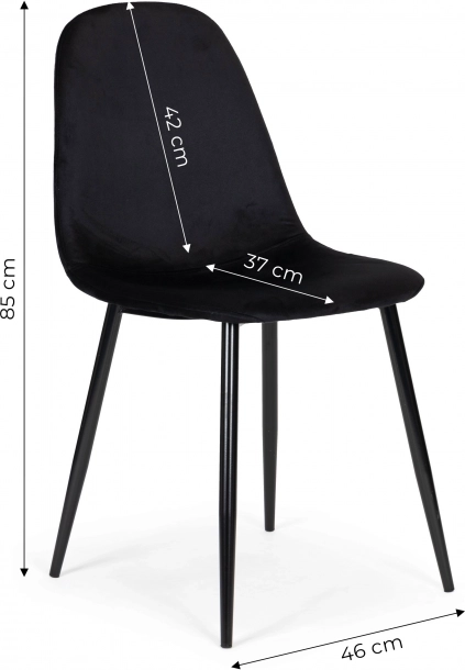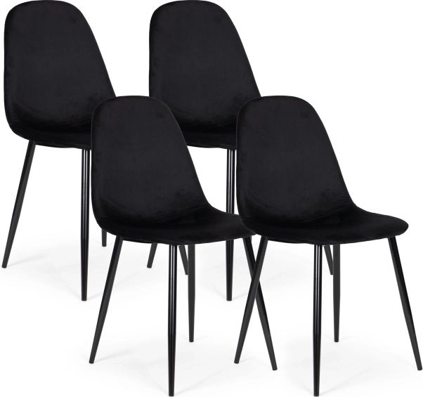 Realza tu interior con el juego de 4 sillas negras ModernHome. El tapizado de terciopelo es agradable al tacto y combina fácilmente con diferentes estilos. La sólida estructura de acero con patas rectas y estables garantiza fiabilidad tanto en el hogar como en espacios comerciales.