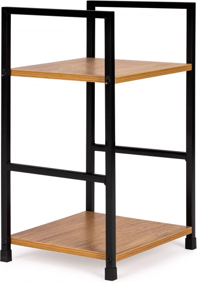 Elegante estantería/mesita de noche de estilo loft que combina un armazón metálico y estantes de MDF de madera para un aspecto moderno y gran estabilidad. Gracias a sus dimensiones compactas, encaja perfectamente en dormitorio, salón, recibidor y baño. Ofrece 2 estantes prácticos, patas protectoras contra arañazos en el suelo y montaje sencillo siguiendo las instrucciones.