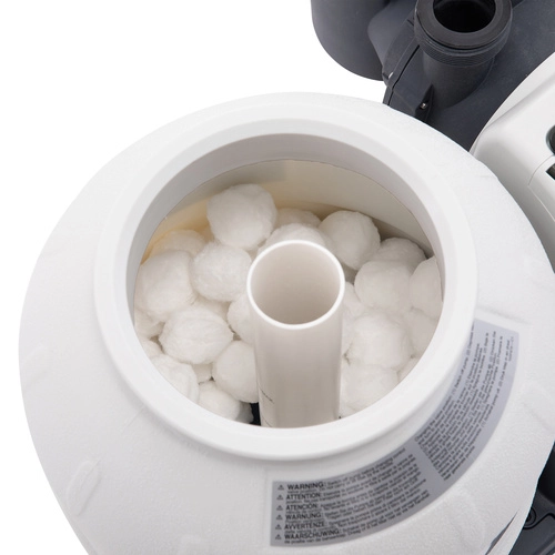 Mantén la piscina cristalina con las bolas filtrantes INTEX. Gracias a la fina estructura de sus fibras, capturan eficazmente las impurezas y garantizan agua transparente y un funcionamiento óptimo de la bomba. Vienen envasadas higiénicamente, son ligeras y fáciles de manipular: basta con verter la cantidad adecuada en el depósito del filtro.