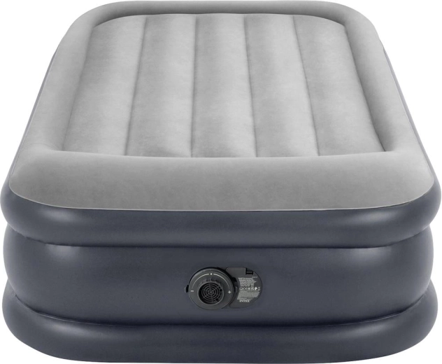 Cama inflable individual INTEX ofrece dimensiones de 191 × 99 × 42 cm, bomba eléctrica integrada para un inflado rápido, superficie de terciopelo aterciopelado para mayor comodidad y una construcción resistente Fiber‑Tech / Dura‑Beam para un soporte estable. Carga máxima 136 kg, incluye bolsa de transporte y parche de reparación.