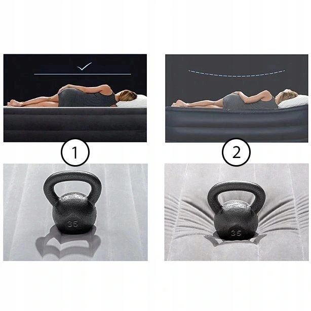 El colchón inflable INTEX para dos personas combina una base de PVC resistente con una superficie aterciopelada e impermeable para un mayor confort al tumbarse. La estructura interna con fibras estabilizadoras Dura‑Beam Fiber distribuye la presión corporal, reduce el balanceo indeseado y proporciona un soporte ergonómico para la espalda durante toda la noche.
