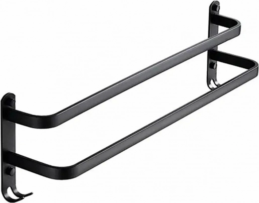 Elegante toallero de estilo loft para baño, fabricado en aluminio resistente con acabado en negro mate. Ofrece dos brazos para toallas y cuatro ganchos inferiores para un aprovechamiento máximo del espacio. Es resistente a la humedad y a la abrasión y se instala fácilmente con tornillos estándar — todo incluido en el paquete.
