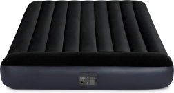El colchón inflable de doble pared INTEX con dimensiones de 203 × 152 × 25 cm ofrece un descanso cómodo para 2 personas en casa o de viaje. Está fabricado en PVC resistente, su superficie es de agradable terciopelo impermeable y, gracias a la bomba eléctrica integrada, se infla en aproximadamente 250 segundos. La construcción estable con tecnología Dura-Beam Fiber garantiza una excelente sujeción de la columna, mientras que la almohada integrada aporta un plus de confort. La válvula práctica permite un desinflado rápido y fácil almacenamiento.