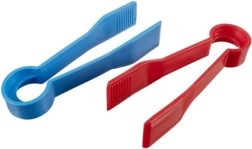 Dos pinzas de plástico ligeras favorecen la pinza correcta, la coordinación y la precisión al trasladar las figuras a los cuencos.