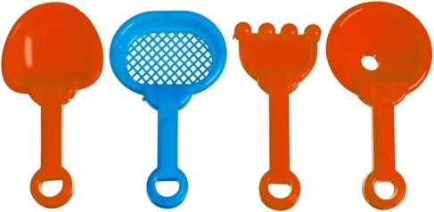 Suficiente material para horas de creación: 2 kg de arena azul, 14 moldes, rastrillo, tamiz, pala y embudo. Los niños pueden construir castillos, carreteras y figuritas.