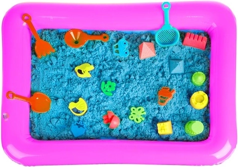 Este gran set incluye todo lo que los niños necesitan para crear castillos, caminos y animalitos. La arena cinética azul de arena silícea es suave, agradable al tacto y puede usarse repetidamente: no se seca ni se endurece. El arenero inflable mantiene todo junto y ayuda a mantener el orden al jugar en casa.