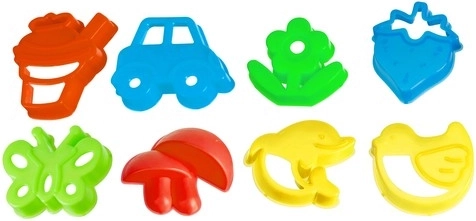 El paquete incluye 14 moldes de plástico, pala, rastrillo, tamiz y embudo, así que nunca faltarán ideas. La arena copia las formas a la perfección, no se desmorona y las partículas se atraen entre sí, por lo que la limpieza es cuestión de un momento.