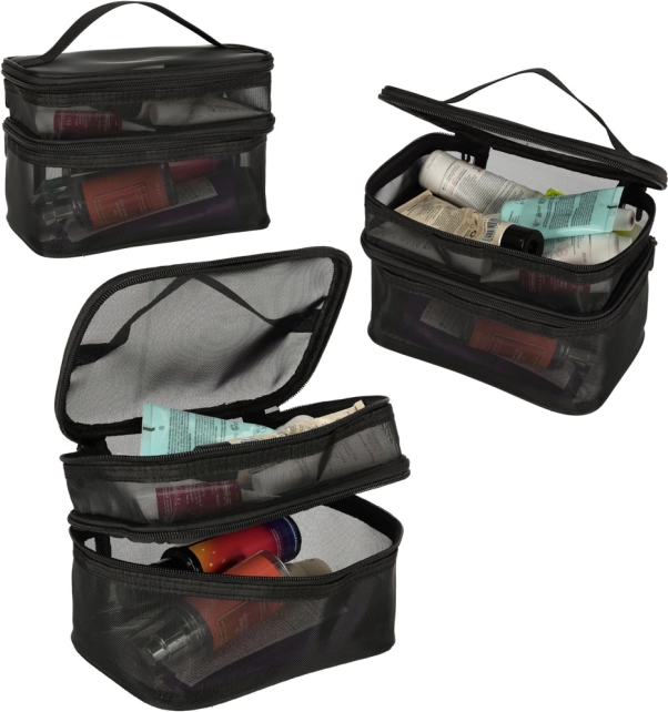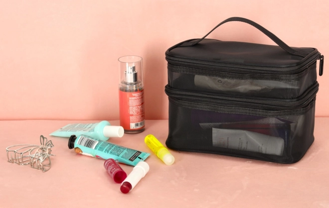 El neceser de viaje es imprescindible para cualquier desplazamiento. Gracias a su estructura de dos niveles, permite una organización clara y el almacenamiento de productos de cuidado personal. El cierre con cremallera bidireccional garantiza seguridad y comodidad de uso. La bolsa está hecha de material transpirable que permite encontrar fácilmente los productos guardados.