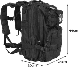 Mochila táctica compacta de 26 l con organización inteligente en cinco compartimentos, material resistente e impermeable y sistema de transporte totalmente ajustable con correa de pecho y cinturón lumbar desmontable. Gracias a las cremalleras a lo largo de toda la longitud, las tiras PALS para el sistema MOLLE y el panel trasero acolchado, es ideal para senderismo, viajes y uso diario.