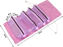 Bolsillos espaciosos y transparentes que mantienen tu maquillaje y accesorios organizados y seguros. Cada bolsillo se puede extraer y reordenar gracias al cierre de velcro.