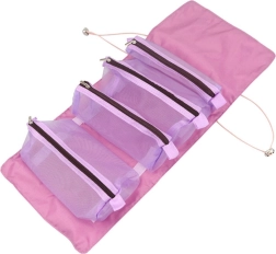Es perfecto para cosméticos, joyas y artículos de higiene, así como pequeños accesorios. Gracias al gancho colgante se coloca fácilmente en el baño o durante tus viajes. El material textil ligero y las dimensiones compactas lo convierten en el compañero ideal para bolso, mochila y maleta.
