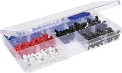 El paquete incluye 500 férulas de varios tamaños en un práctico organizador de plástico.