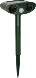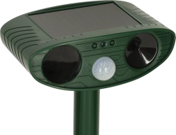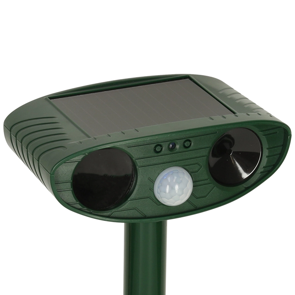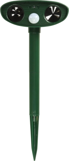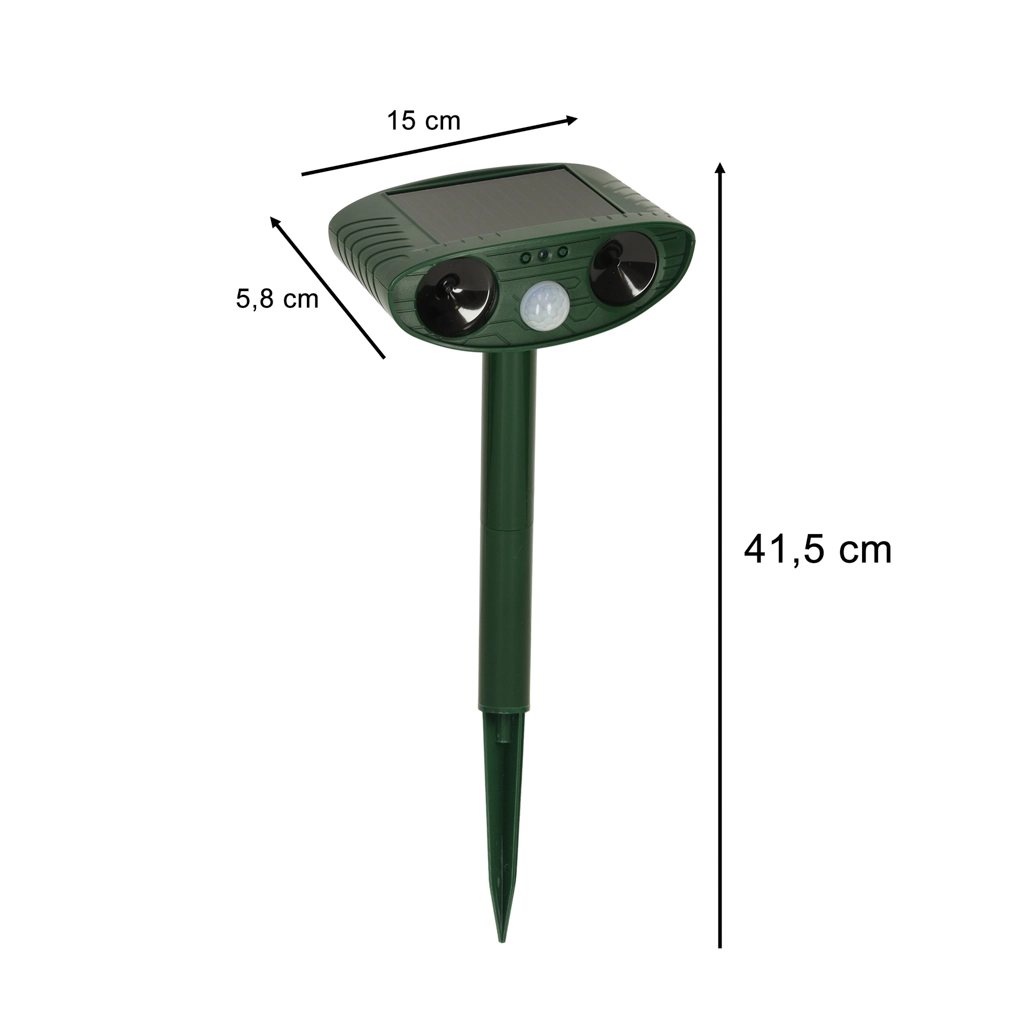 Este repelente tiene un alcance operativo de 6 a 8 metros, por lo que cubre áreas grandes como jardines, huertos o zonas de recreo. Está fabricado en plástico resistente de color verde, que se integra con el entorno y soporta todas las condiciones meteorológicas.