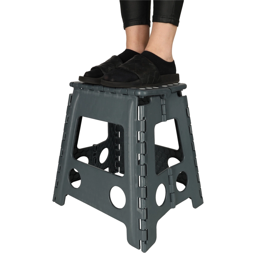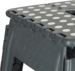 Este taburete plegable es el ayudante ideal para la cocina, el baño, el taller y la habitación infantil. El plástico robusto y el acabado antideslizante de la superficie superior garantizan un paso seguro y un uso cómodo. Una vez plegado, el taburete tiene dimensiones compactas, por lo que se guarda fácilmente en un armario o detrás de la puerta.