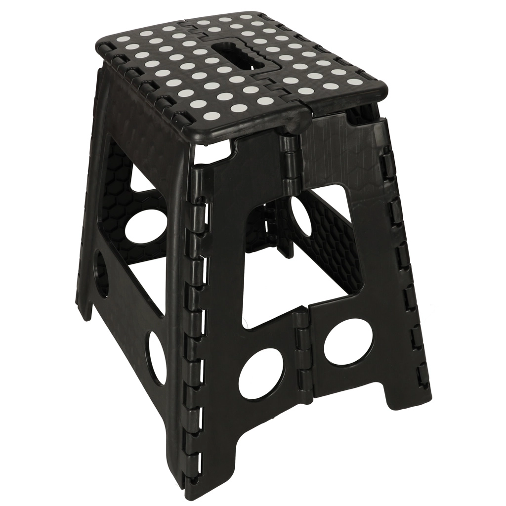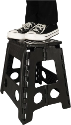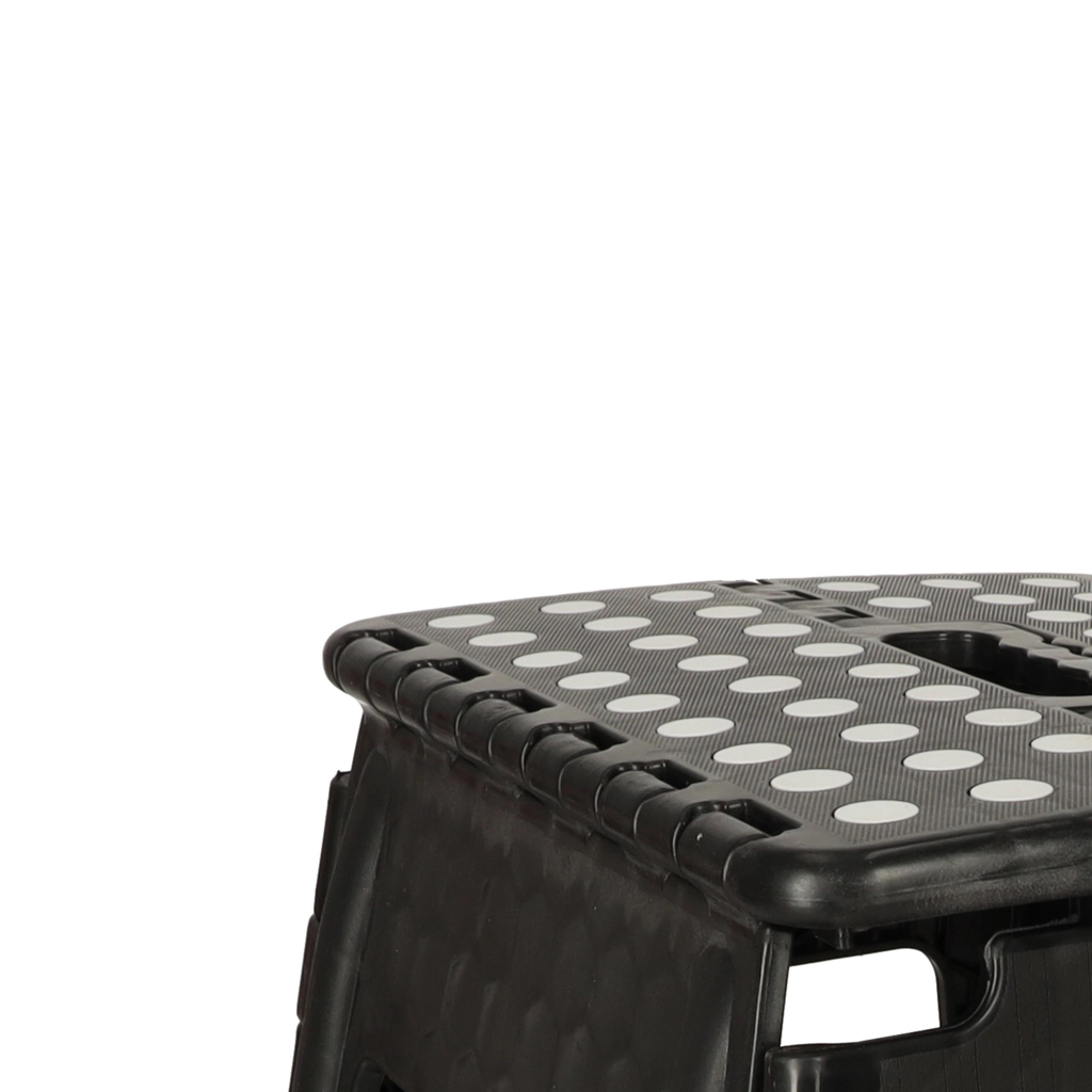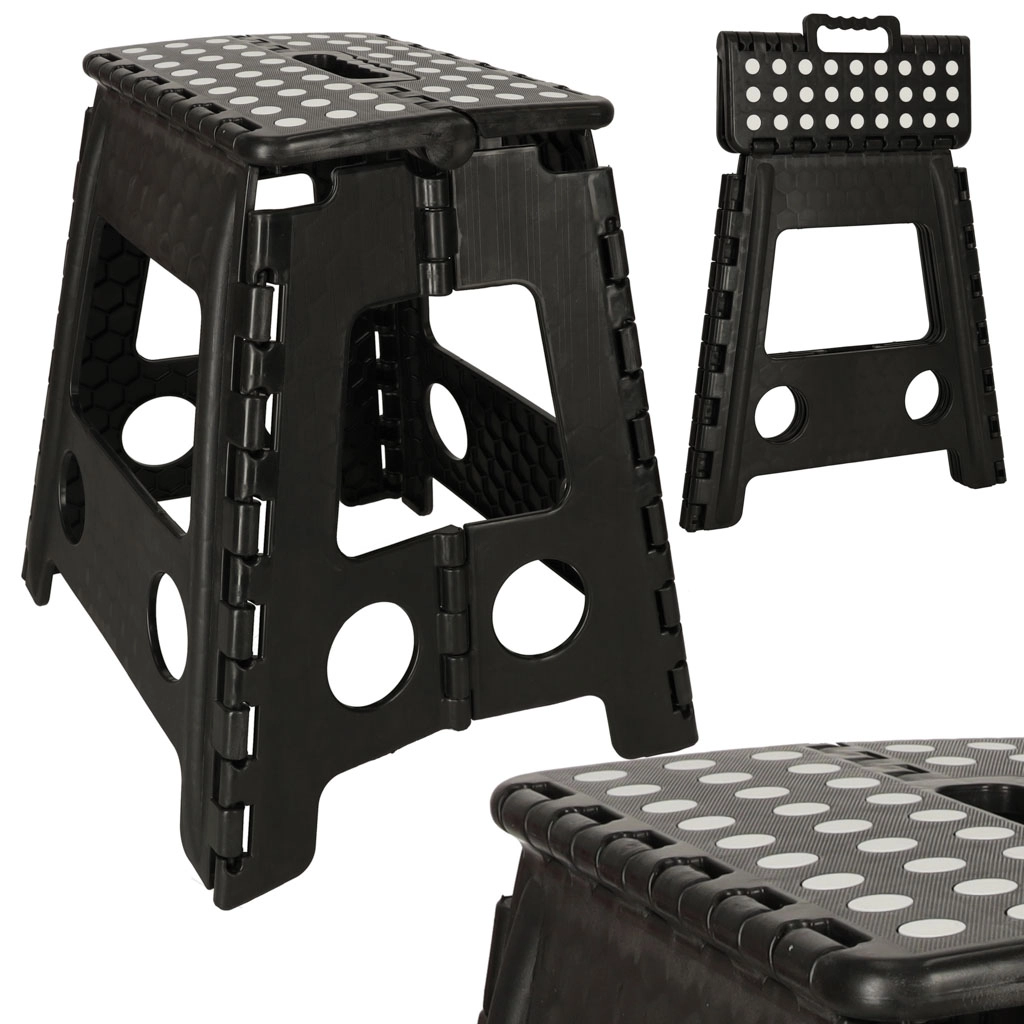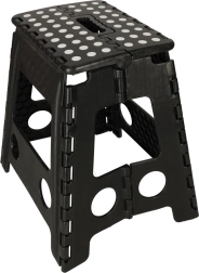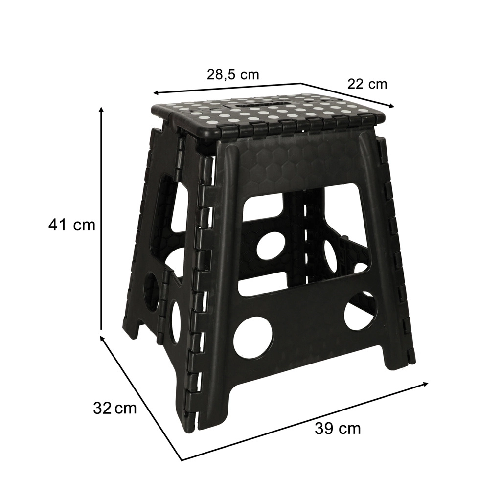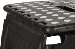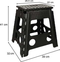 El taburete tiene una altura de 39,5 cm, por lo que podrás alcanzar cómodamente estantes y armarios más altos. Gracias a su capacidad de carga de hasta 150 kg, es apto para niños y adultos. El asa integrada facilita el transporte y la manipulación, mientras que el mecanismo de plegado rápido ahorra espacio.