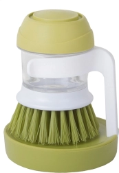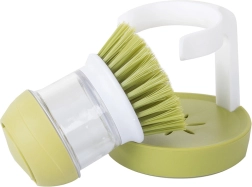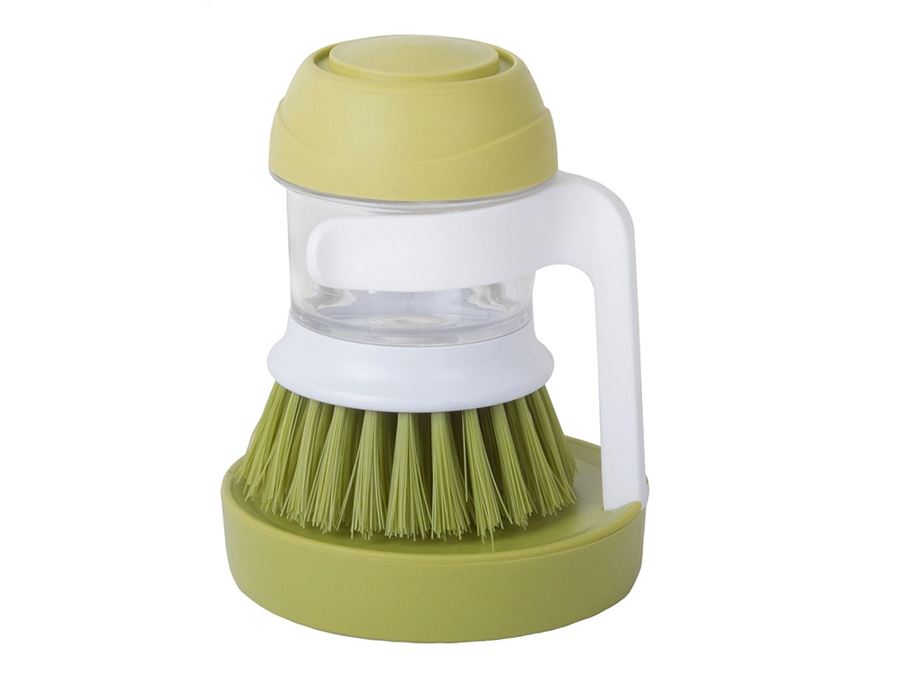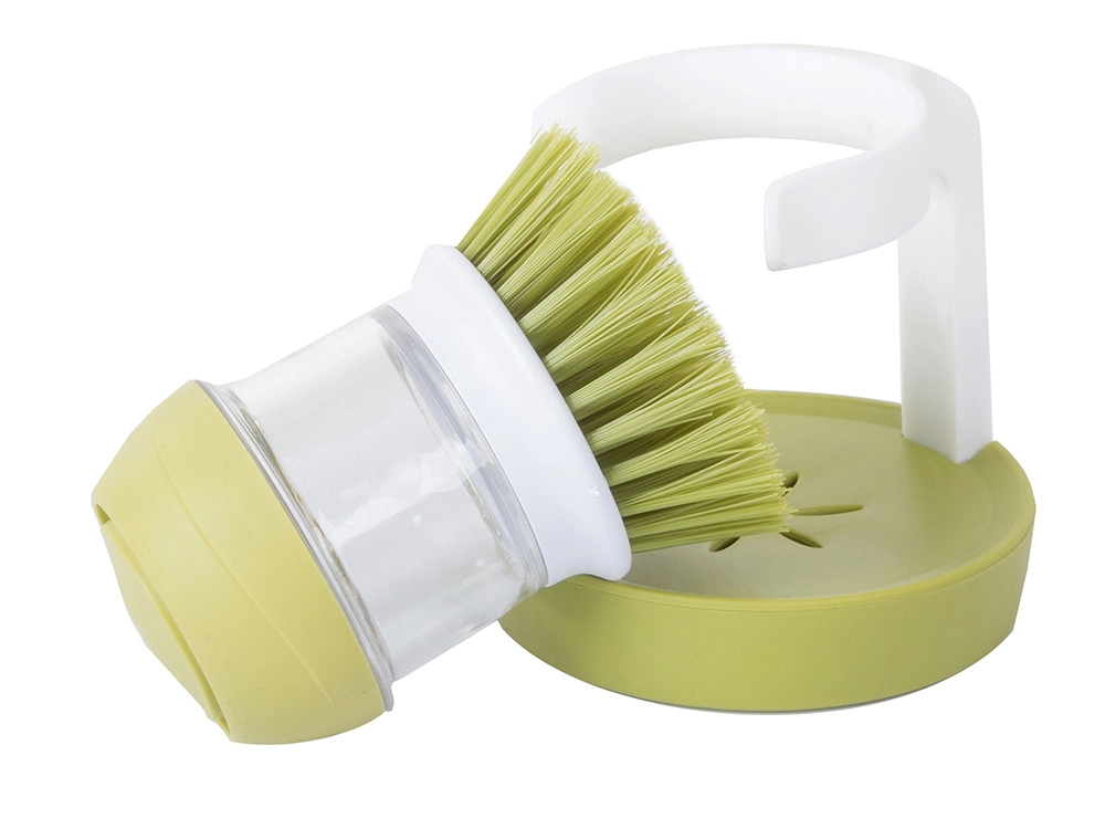 Práctico cepillo para platos con dispensador de detergente integrado y soporte estable para mantener la cocina limpia y ordenada. Con solo presionar el botón superior se libera la cantidad exacta de detergente, haciendo el lavado rápido e higiénico. Gracias a las cerdas densas elimina fácilmente la suciedad resistente y las incrustaciones, mientras que el soporte de goteo mantiene la encimera sin charquitos.