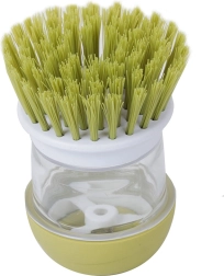 Facilita el lavado diario de los platos. El cepillo con dispensador de líquido integrado dosifica el detergente directamente mientras friegas: solo hay que presionar el botón superior. Su forma ergonómica se adapta bien a la mano y las cerdas densas y firmes pueden con ollas, sartenes y manchas secas.